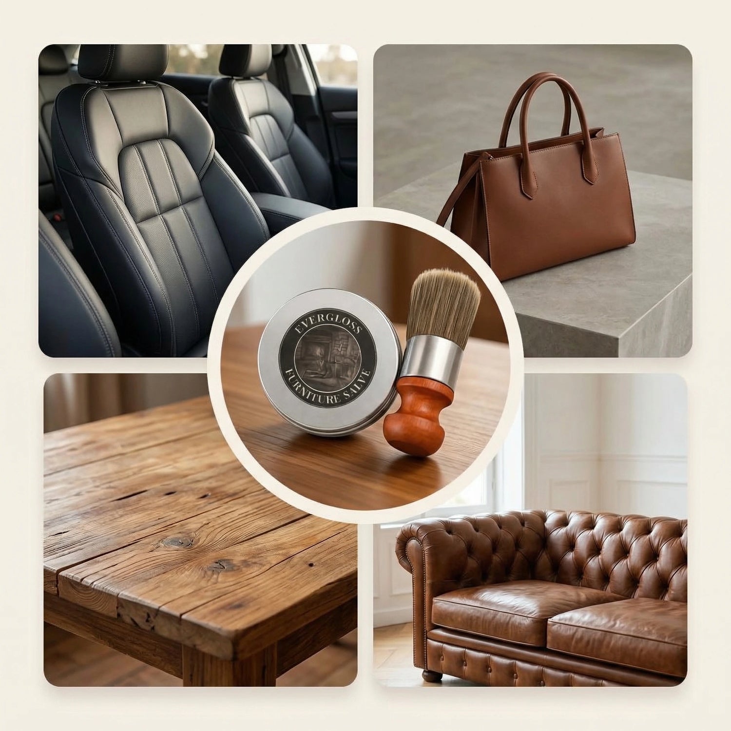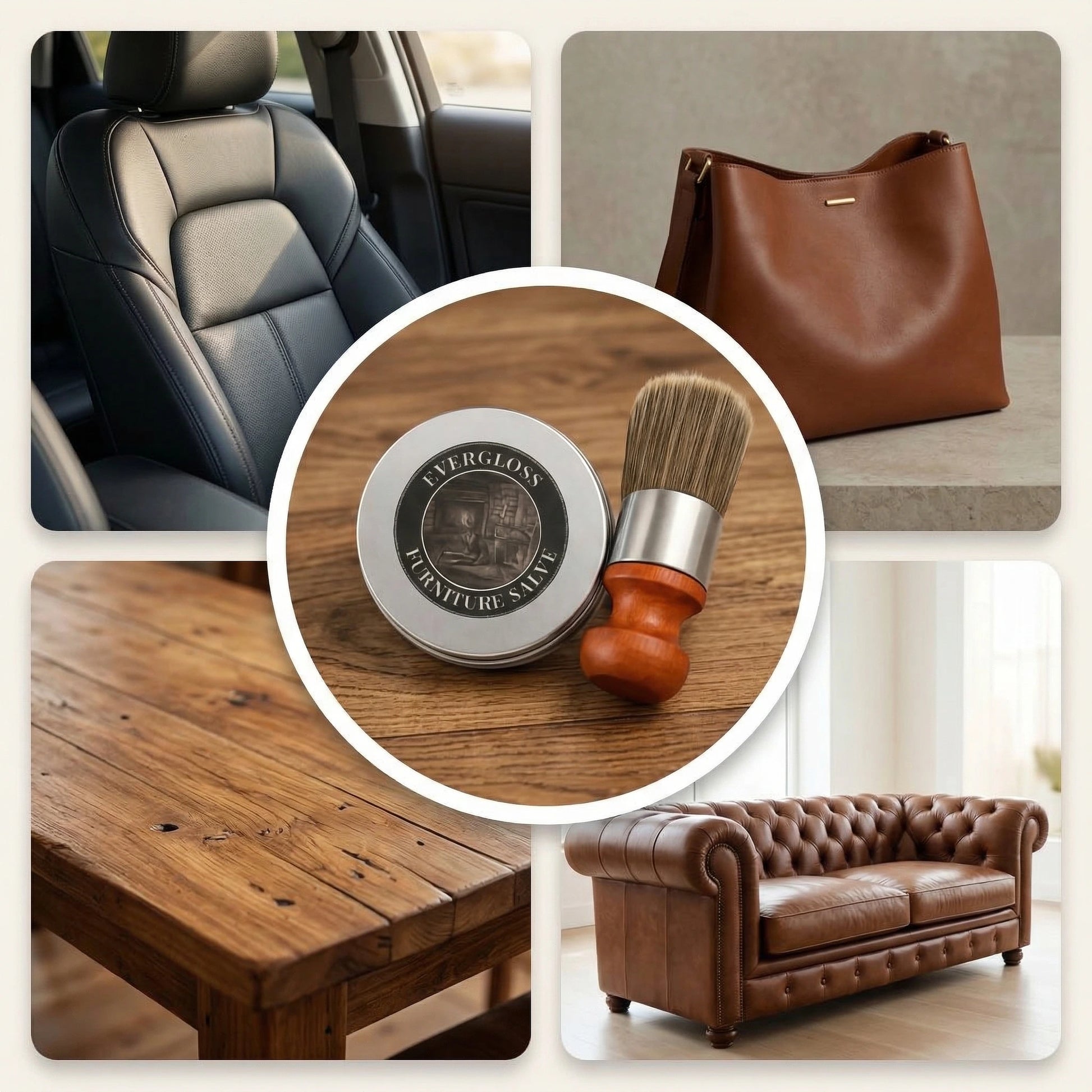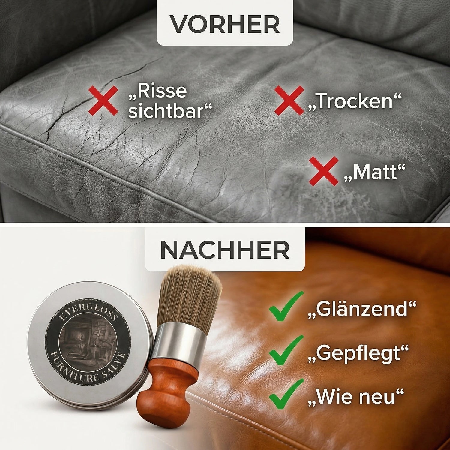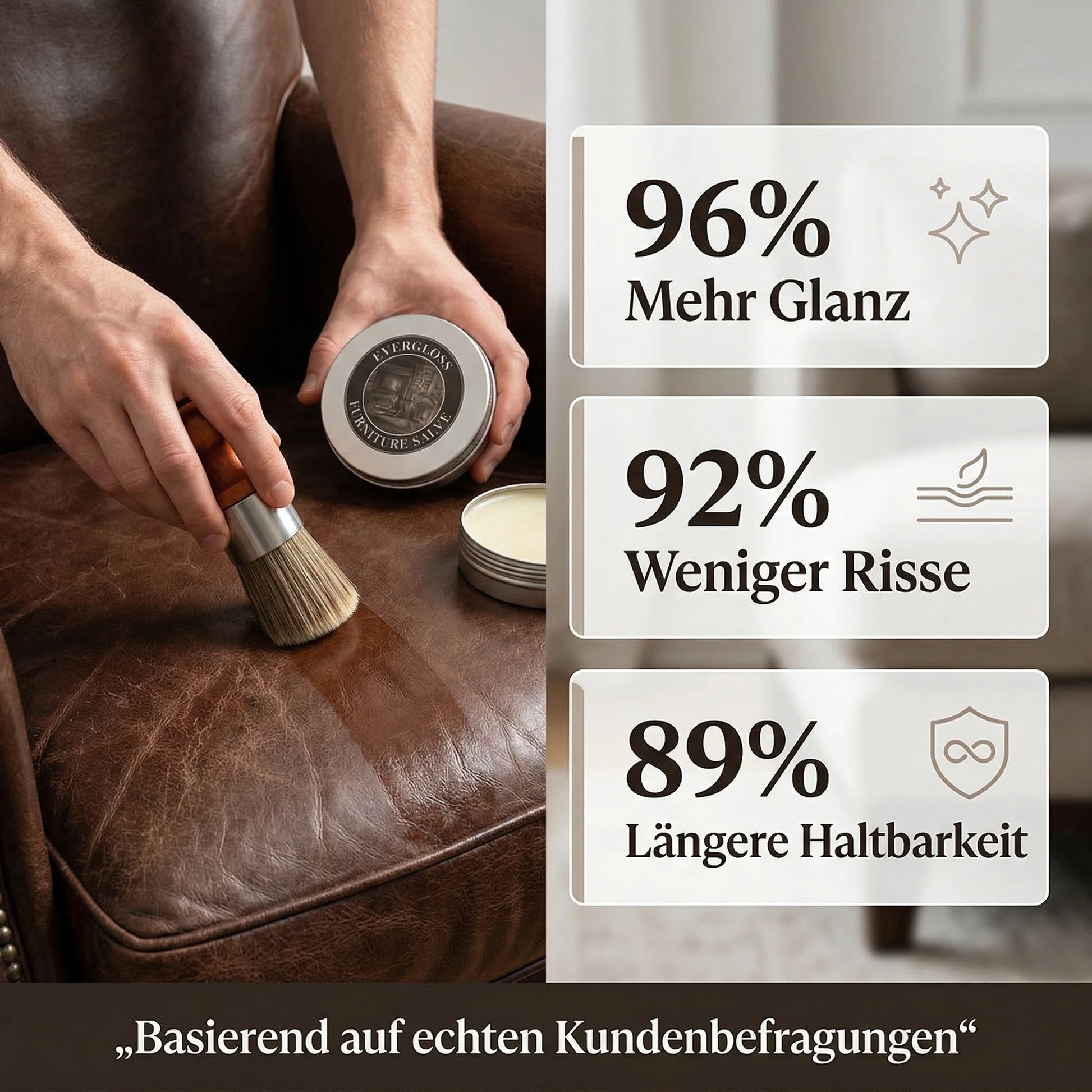 EverGloss™ ist die All-in-One-Lösung für Leder, Holz und sogar Metall – ideal für Sofas, Stühle, Autositze und mehr.